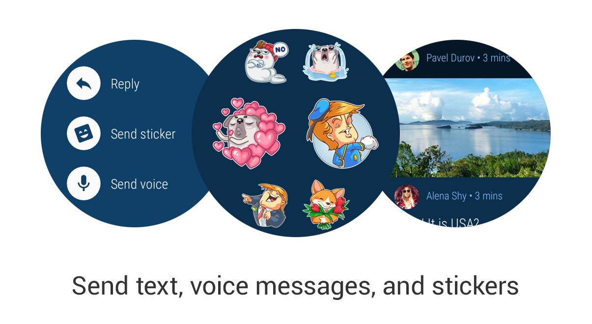 Google has just unveiled Android Wear 2.0, the latest in smartwatch platforms. It supports standalone apps, so today we're releasing Telegram for Android Wear 2.0. It‘s everything you’d want from a perfect watch app — compact, beautiful, and super-fast.