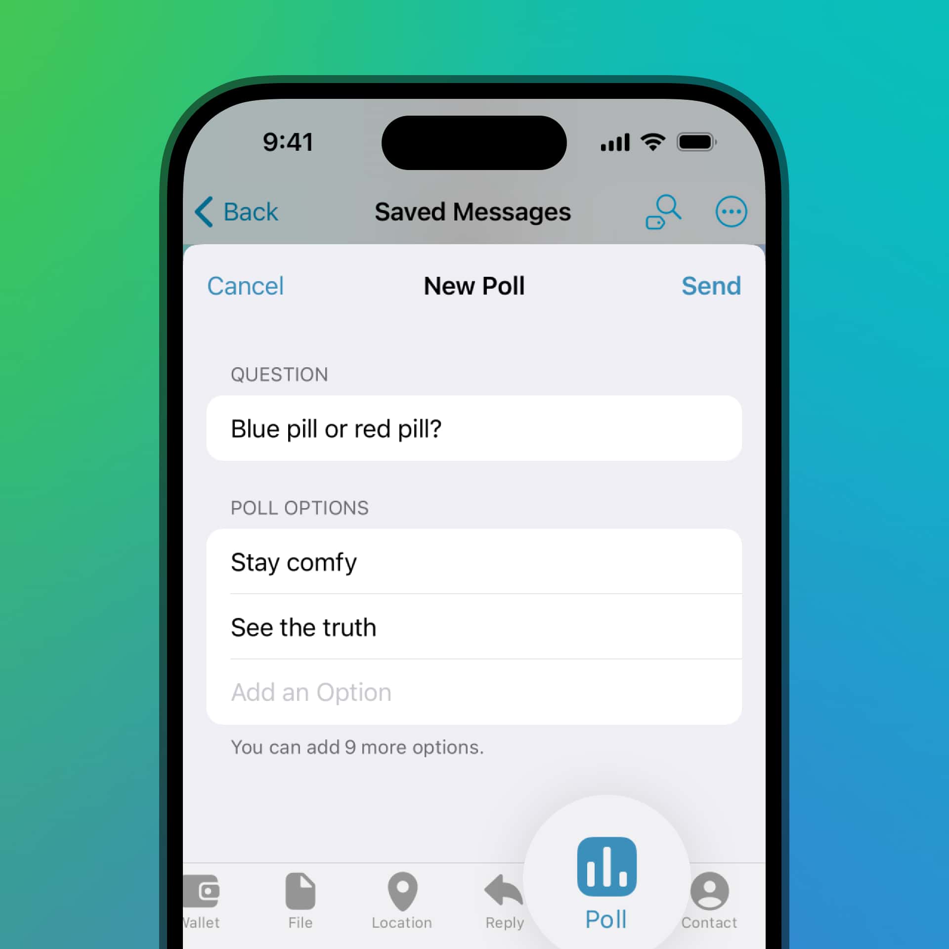 این بهروزرسانی نظرسنجیها را حتی انعطافپذیرتر کرده است و اکنون از حداکثر ۱۲ قابلیت پشتیبانی میکند. همچنین نظرسنجیها اکنون میتوانند به پیامهای ذخیرهشده شما ارسال شوند — تا نتایج را برای مراجعات بعدی علامتگذاری کرده یا نظرسنجی را بعداً با سایر گفتگوها به اشتراک بگذارید.